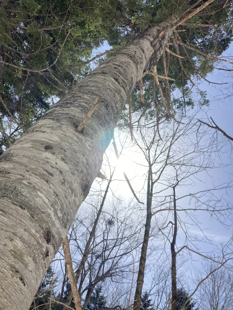 彼らが横たわっていたトドマツの前に立つ。