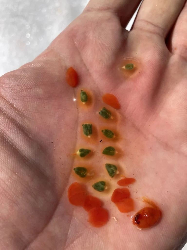 種は液に覆われ、拾い上げると、