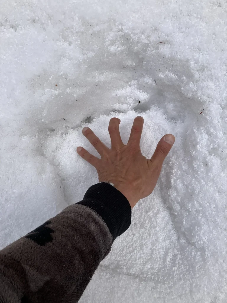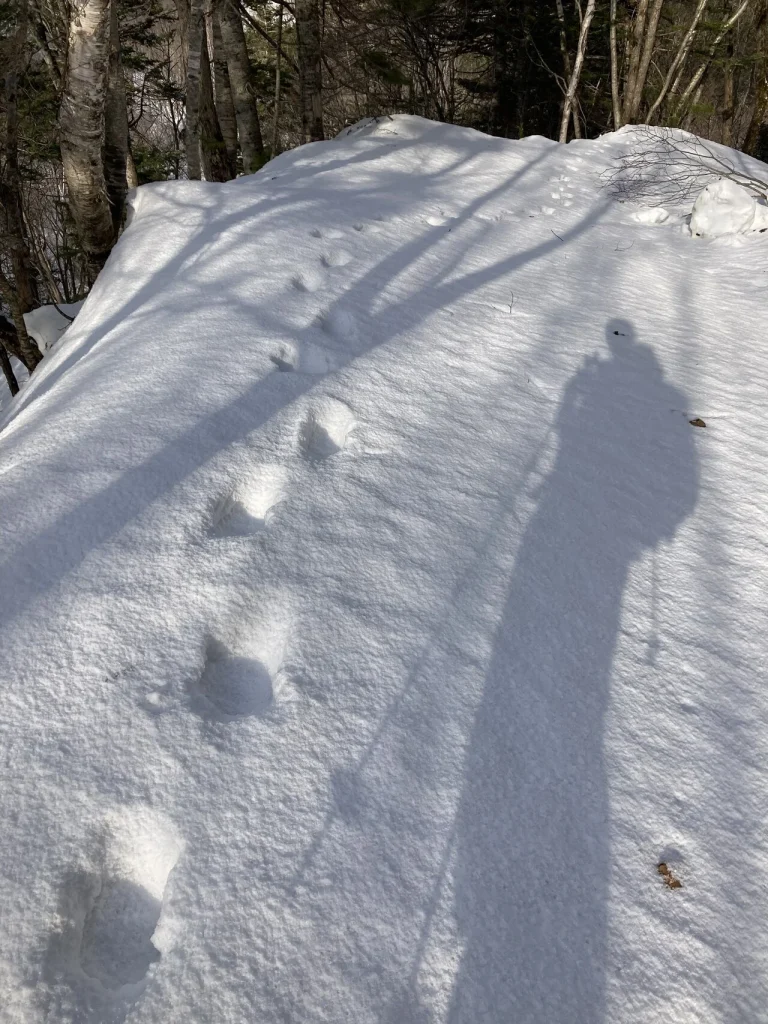 しばらくして、ヒグマの足あとを見つけた。