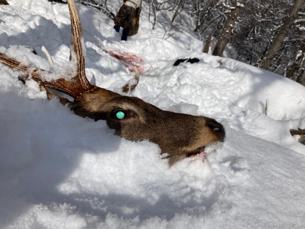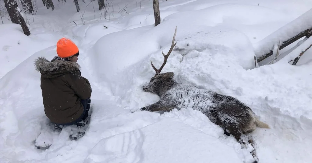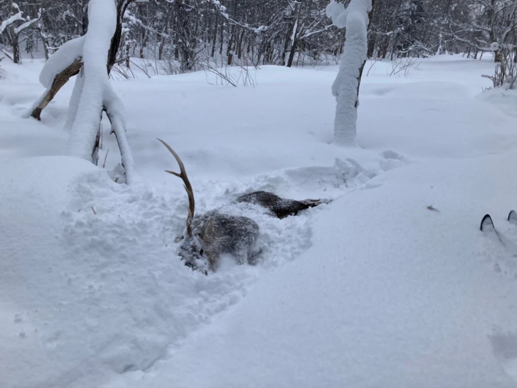 雪が深いので、鹿がすぐに止まって休むことも考えられるが