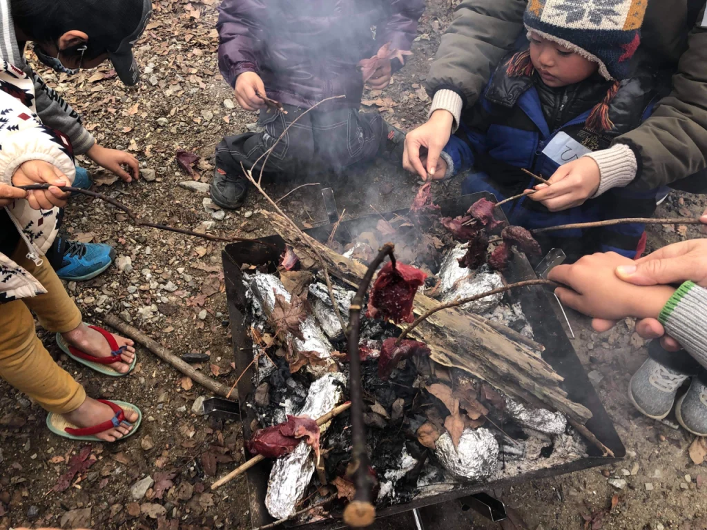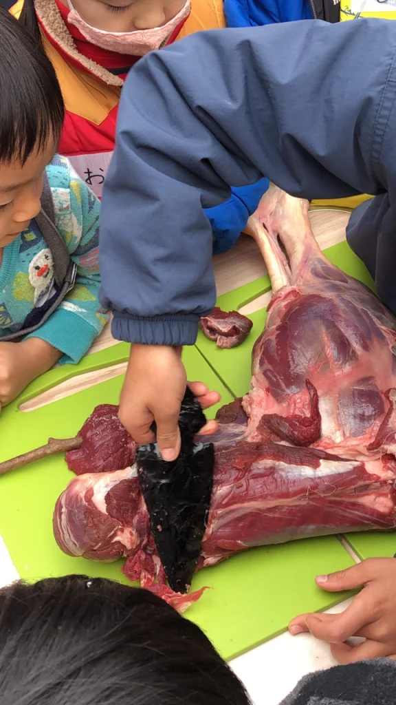 仁さんはそこで子供達や親御さんと雄鹿を食べた。
