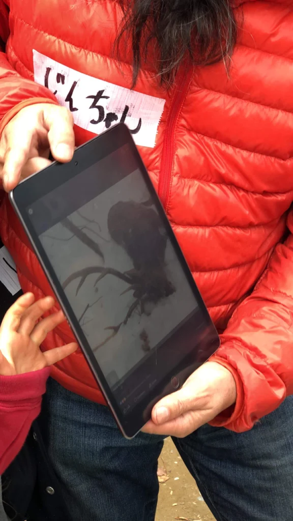 子供達は夢中で雄鹿に食らいつきながら