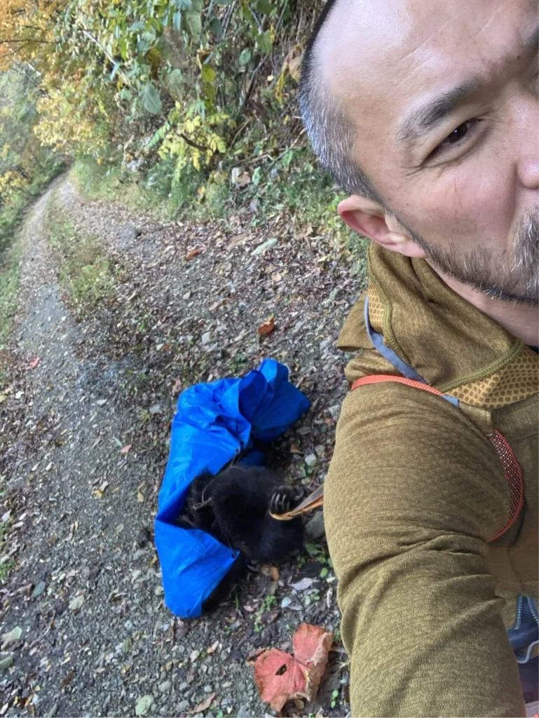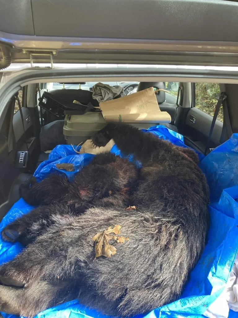 F氏が入り込んで車内からクマを引っ張り上げ、