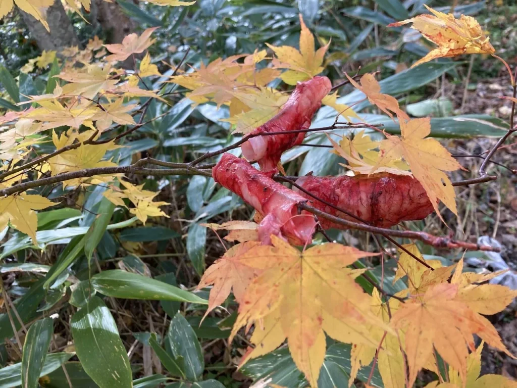 撃ったシカが急斜面の途中に引っ掛かってしまった時など、