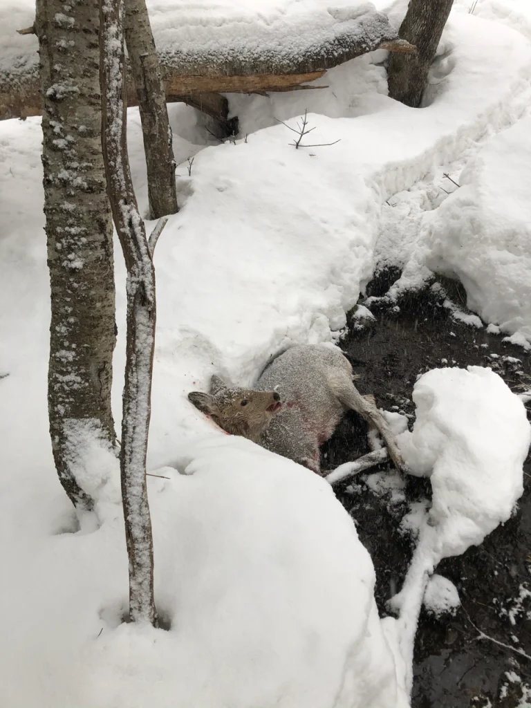 以前、新雪の中の鹿を回収するとき、