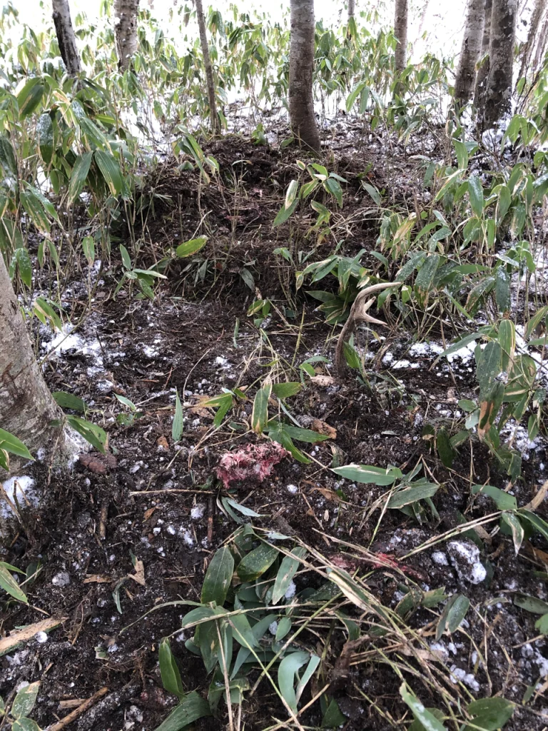 熊が鹿を土に埋めたものだ。