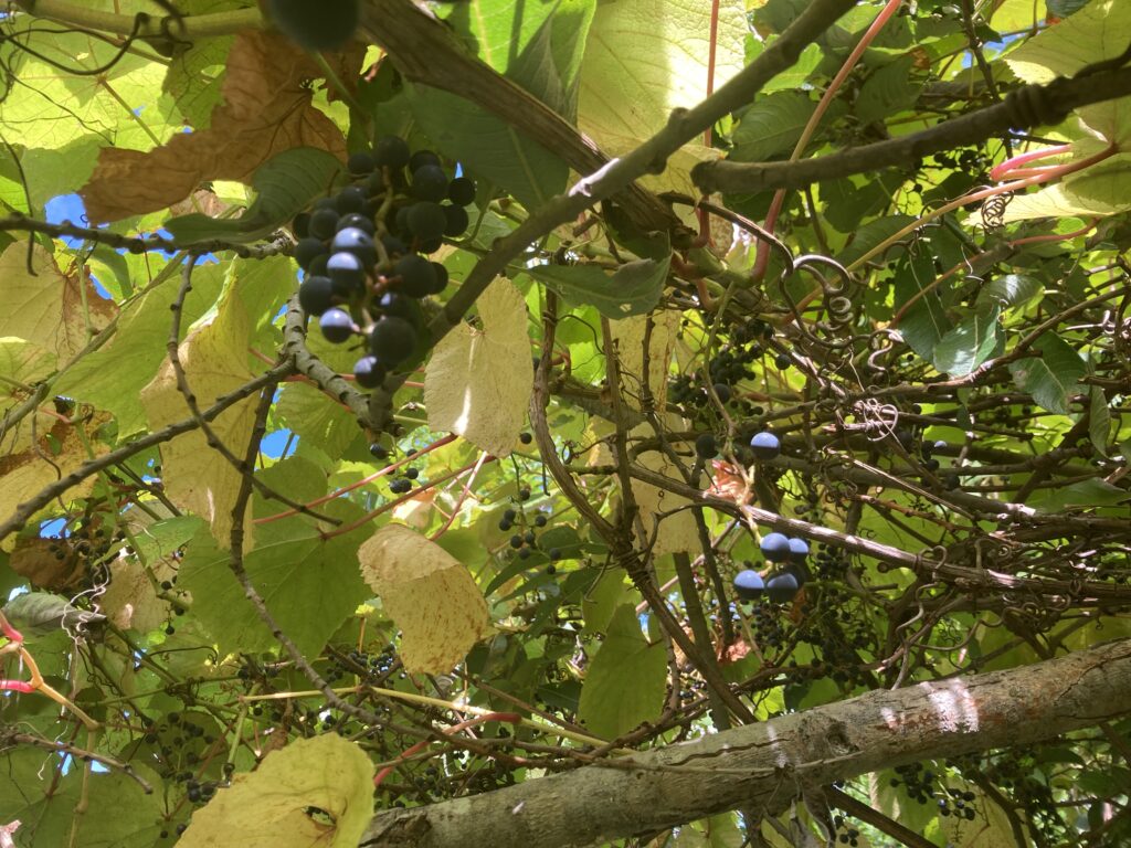 遥か頭上のヤマブドウの下で