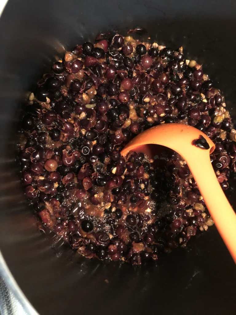 濃い赤紫の果汁は、