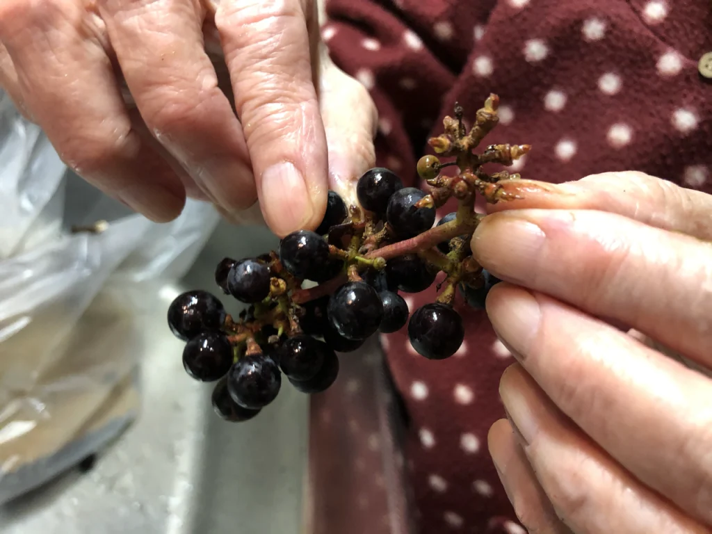 綺麗に水洗いしたヤマブドウは