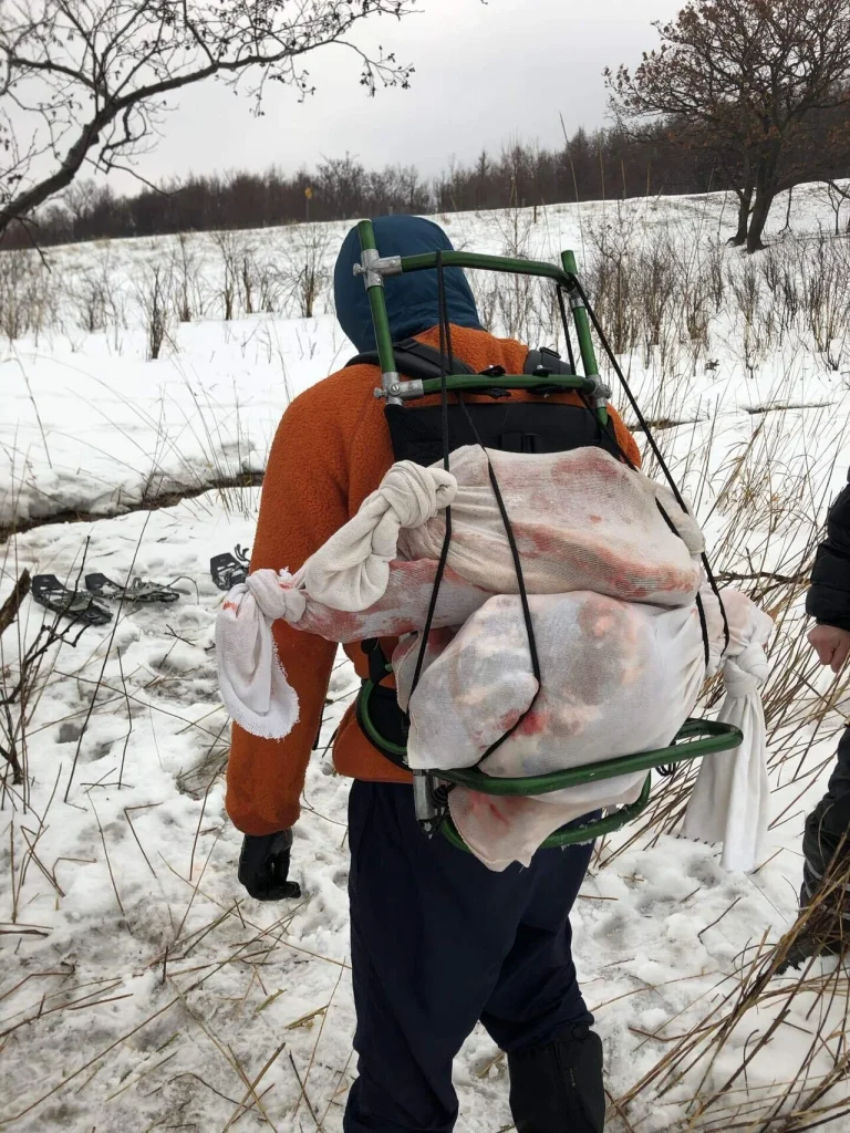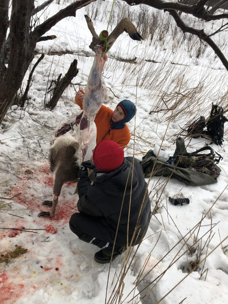 お二人のおかげで仔鹿は綺麗な肉になった。