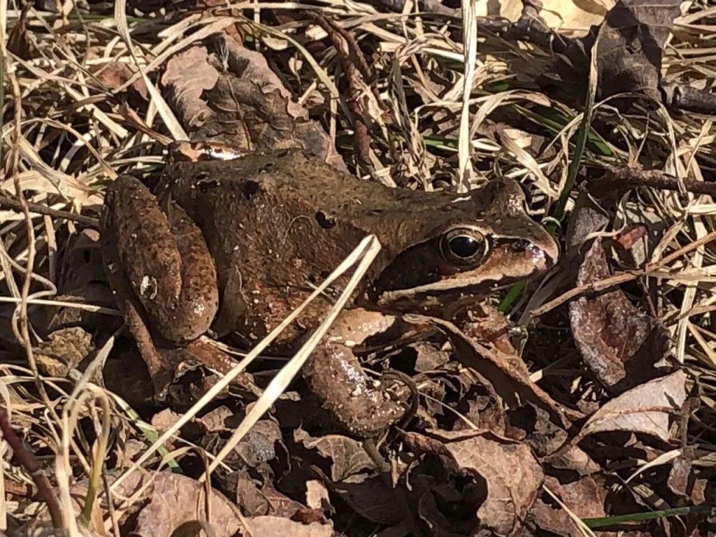 冬眠から目覚めたエゾアカガエル。