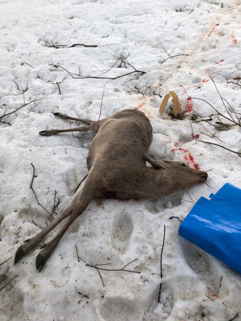 私が撃った鹿が倒れていたところ。