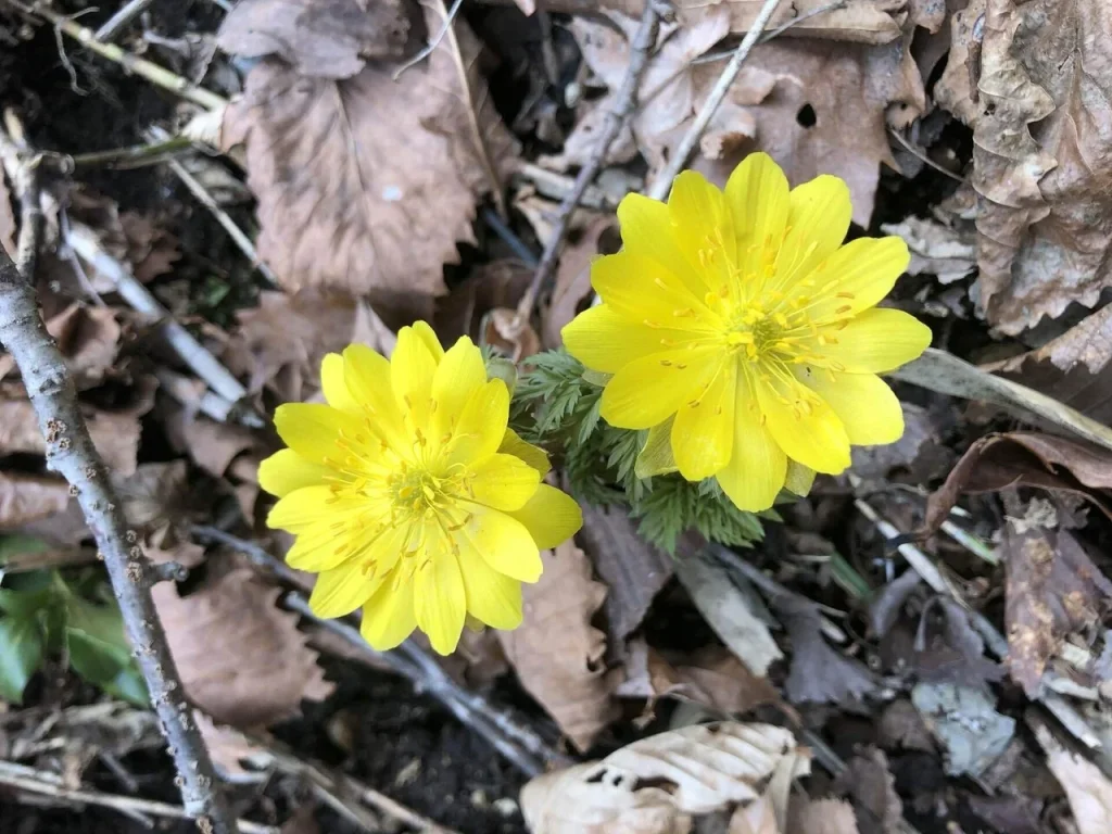 たくさんの福寿草が咲いている。