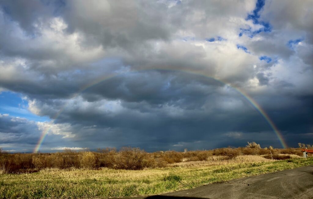 巨大な虹が、地平線から立ち上っていた。