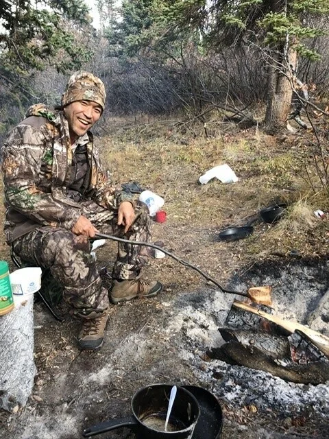 夜は焚き火を囲み、ヘラジカ、オオカミ、ヒグマ、トナカイ、